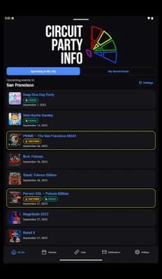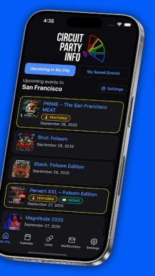With Circuit Party Info, you can: - Discover circuit parties and related events from cities around the world. - Save your home city to get a personalized event feed. - Turn on notifications for updates and reminders. - Browse event details with dates, ticket links and promo codes. - Stay in the know with quick access to the latest event info.