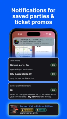 Browse upcoming events, explore party details and save your home city to see what’s happening near you. Get push notifications so you never miss ticket drops and discounts on upcoming parties.