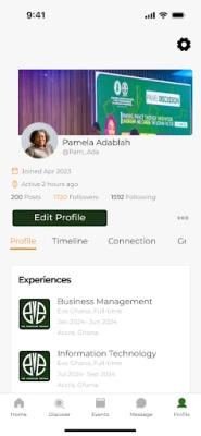 The EVE app offers a diverse range of professional groups tailored to various industries and career stages