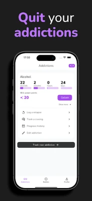 Each day you resist an addiction, you earn Willpower Points. These points help you fight and defeat monsters that represent your bad habits. But beware, a single relapse feeds the monster and costs you hard-earned points.